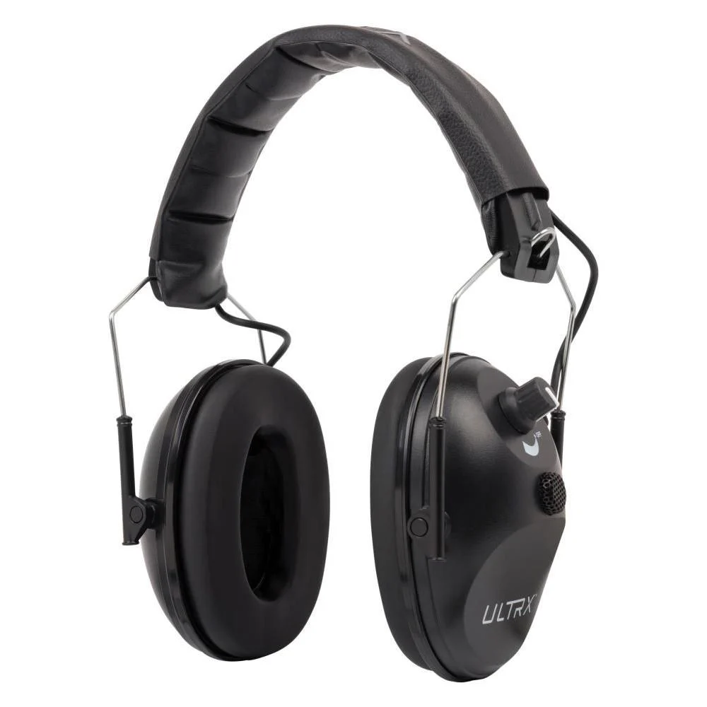 The ULTRX Electronic Earmuff brings together top-notch sound comfort and safety. Providing superior hearing protection the earmuffs ensure a Noise Reduction Rating (NRR) of 23dB ensuring your ears are shielded from harmful noise levels. Featuring a single high-frequency microphone it amplifies sounds allowing you to stay connected with your surroundings. Worried about your hearing? Don't be! The built-in microphone intelligently shuts down at 82dB safeguarding your hearing. Operating on just a single AAA battery these earmuffs are compact with a foldable design making them portable so you can carry them wherever you go. Invest in the ULTRX Electronic Earmuff today and experience the perfect blend of safety functionality and convenience for your ears.