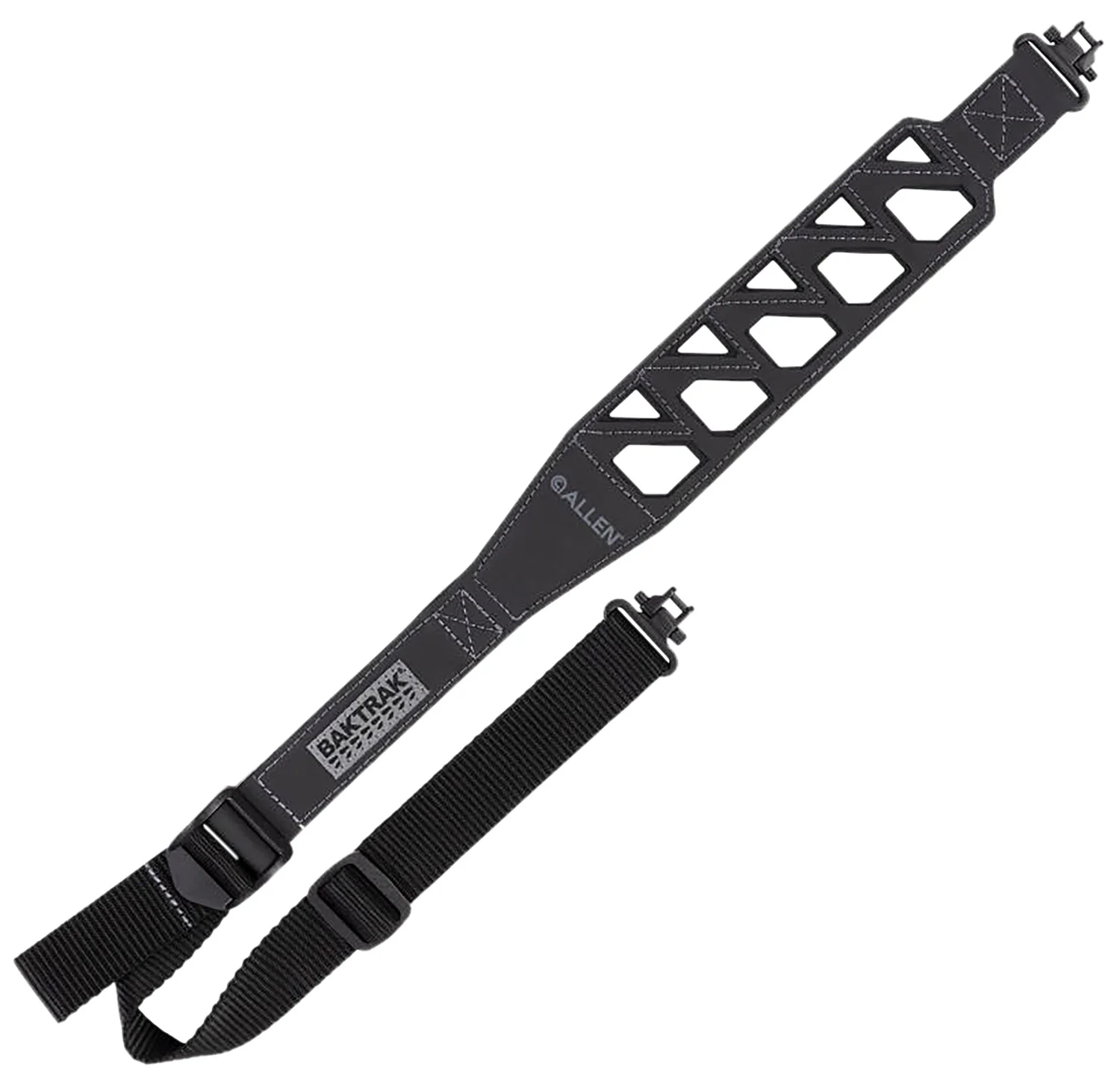 The Range Pro comfortable firearm sling with non-slip foam shoulder pad, thumb loop and rubberized non-slip backing. Fits most rifles and shotguns. Adjusts from 28″ to 40″ to fit most rifles and shotguns. Includes metal sling swivels.