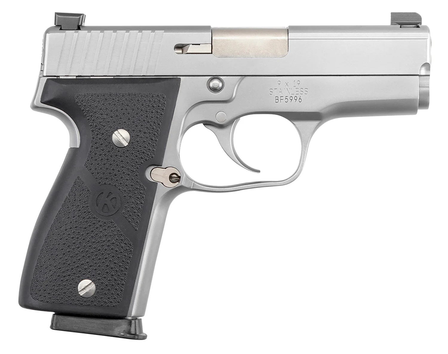 The Kahr K9 is among the mini-9s that have taken both the law enforcement and civilian concealed carry market by storm. This semi-automatic .9mm pistol features tritium night sights, trigger cocking DAO, passive striker block, lock breech, no magazine disconnect. The K9 is a reasonably lightweight gun weighing 25 ounces with a respectable maximum capacity. Includes three magazines.