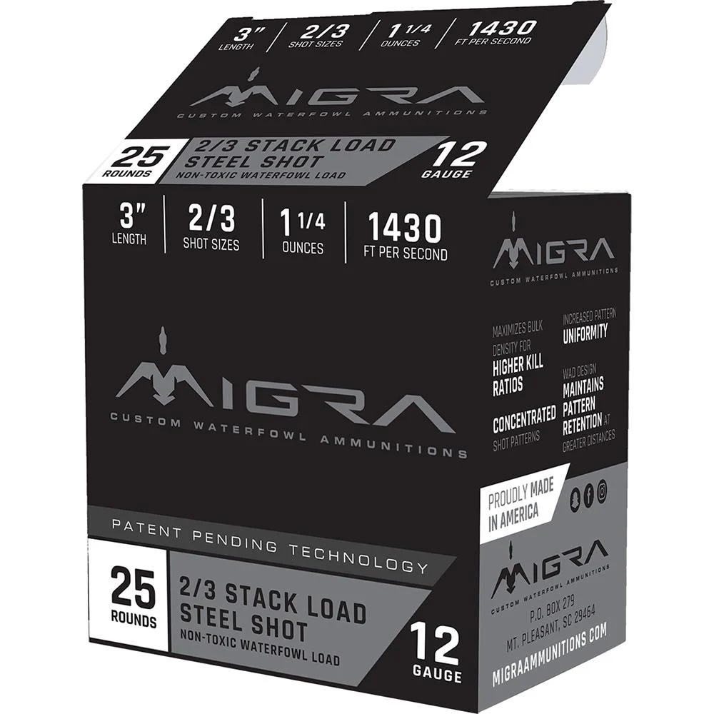Migra Waterfowl Steel Shot Shot Shells 12 ga 3″ 1-1/4 oz #2#3 1430 fps 25/ct