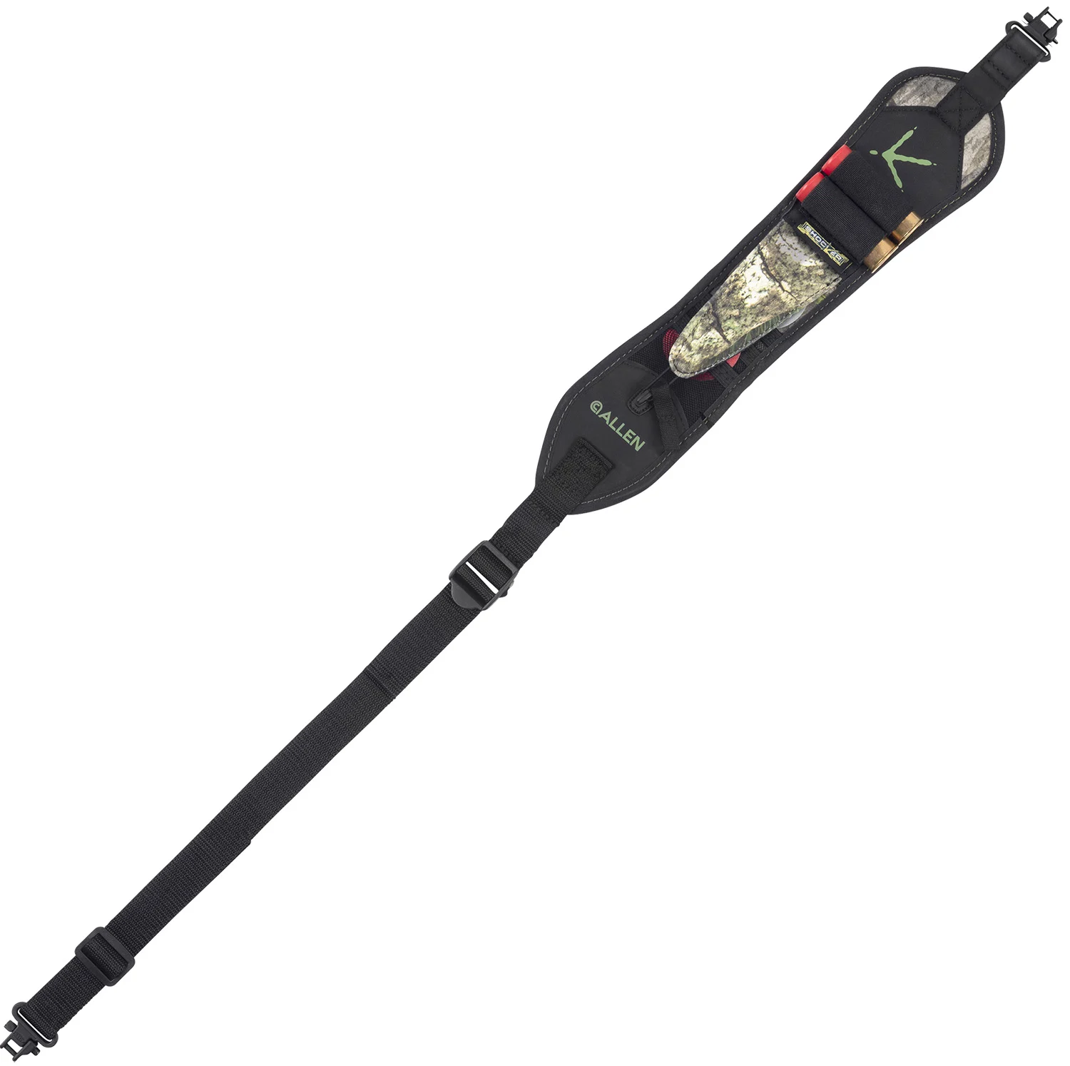 The Shocker Hypa-Lite Turkey Hunting Shotgun Sling with Swivels, by Allen is designed with turkey hunting in mind. The durable, lightweight Hypalon construction provides low-density foam and Mossy Oak Obsession Camo sewn together with non-slip backing. Featuring 3 storage pockets for your mouth calls, a heavy-duty buckle, and swivels tested to over 500 lbs. 1″ adjustable web sling and includes an adjustable ladder lock buckle for quick adjustment.