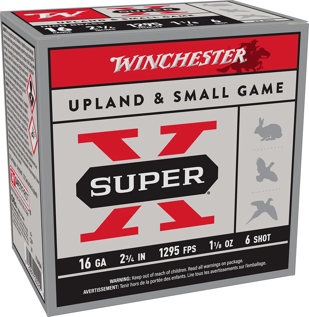WINCHESTER SUPER X UPLAND 16 GA 2-3/4″ #6 HB 1-1/8 OZ 25 RD/BX 10 BX/CS